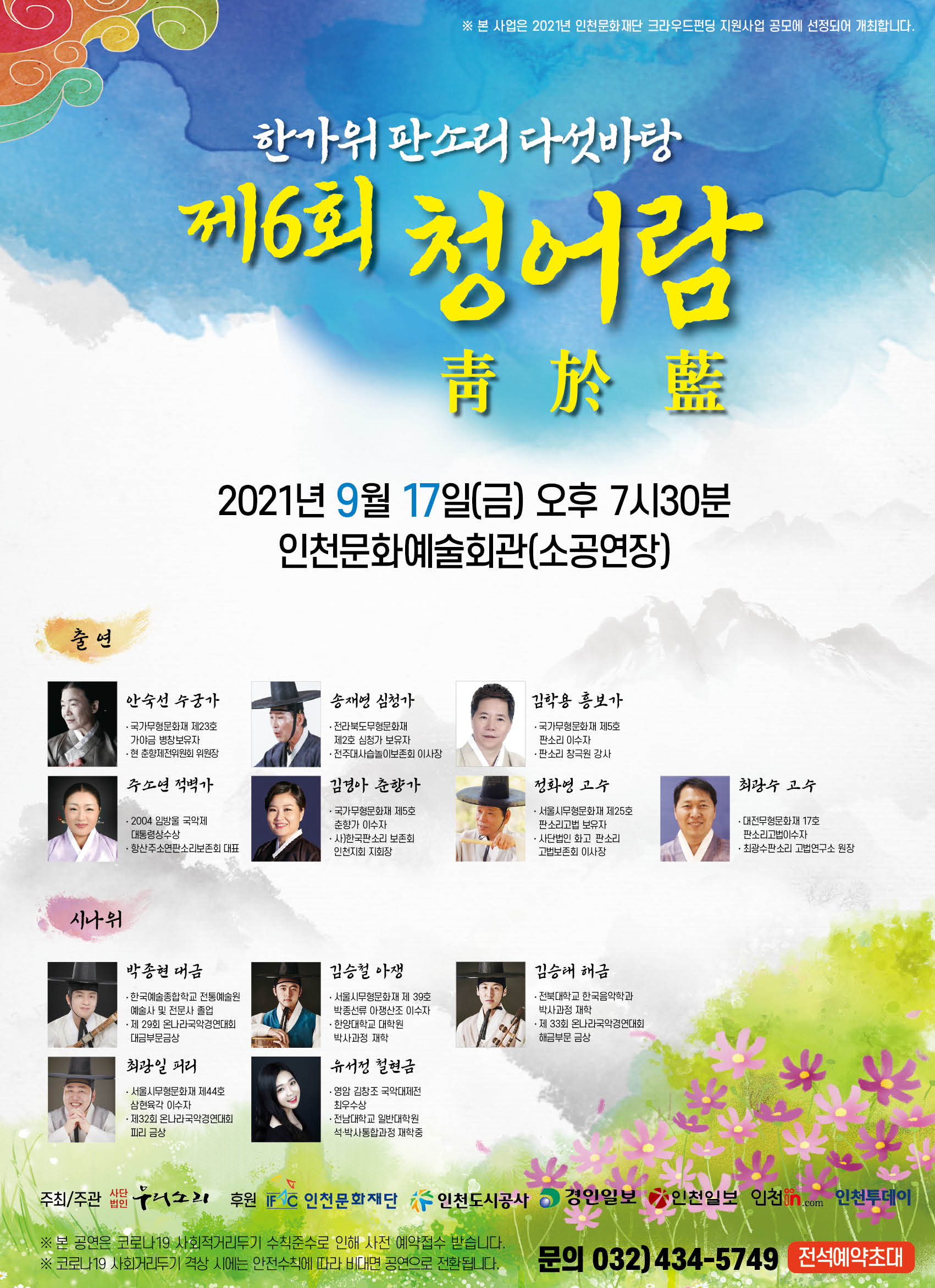 올해는 판소리 명창안숙선선생님을 비롯하여 전국 각지에서 활동하는 귀명창들과 우리의 전통 계승에 힘쓰고 있는 국악인들이 한가위를 맞아 판소리 다섯바탕으로 국악의 향연을 펼쳐보았습니다.