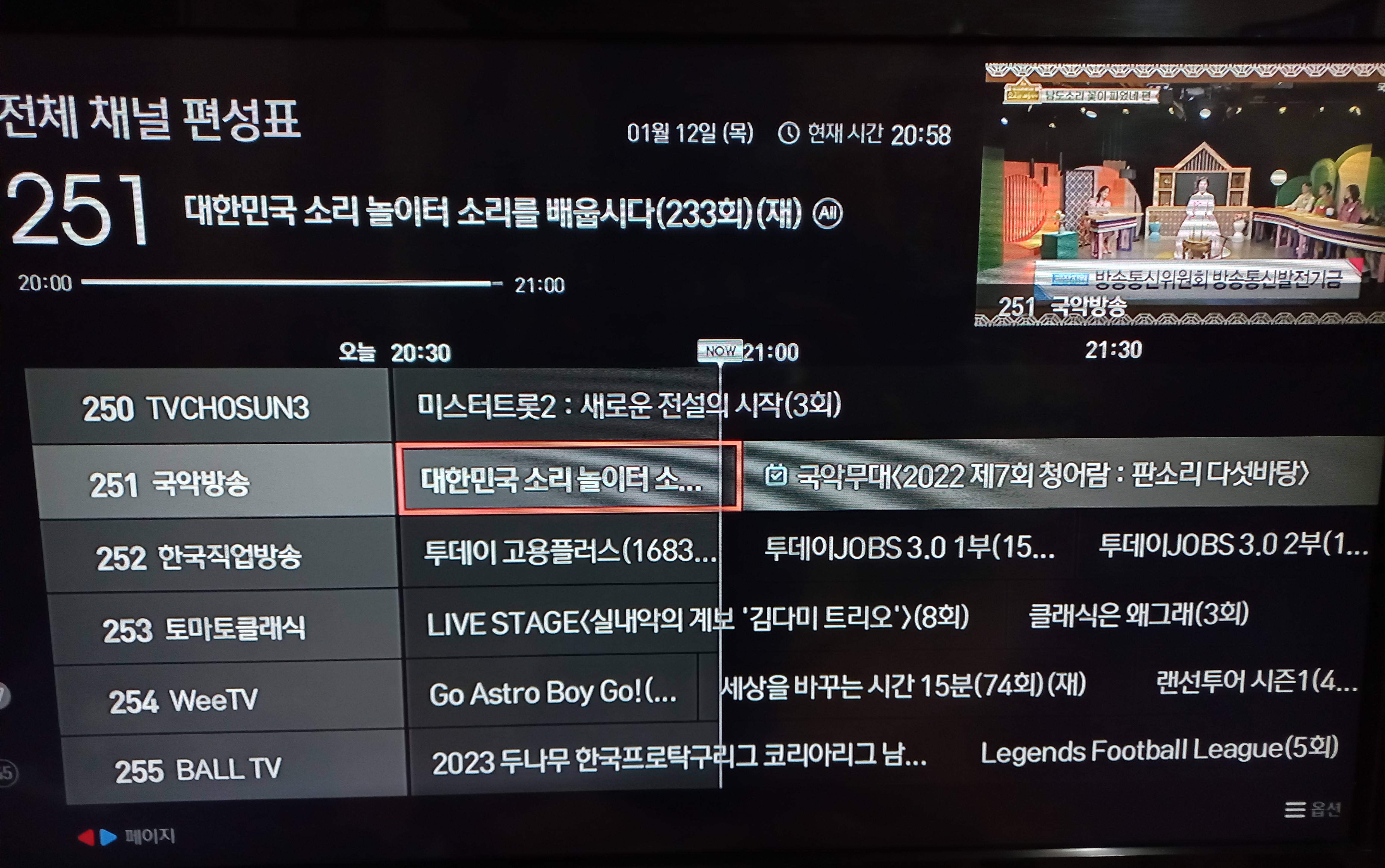 23년 1월 12일 목 21시 국악무대 방영